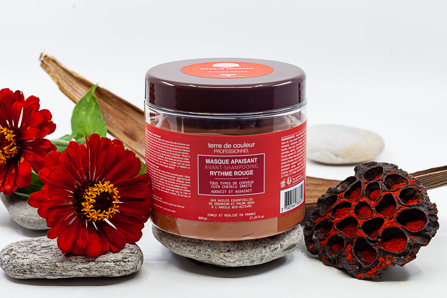 Heureusement, notre duo Rythme Rouge Masque et Shampooing aide à apaiser ces irritations tout en purifiant délicatement le cuir chevelu.
